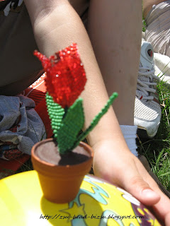 Na és neki is álltam fűzni, először is egy tulipánt (nemesített tulipánt) fűztem egy kisfiú - unokatesóm kisfia - kérésére.